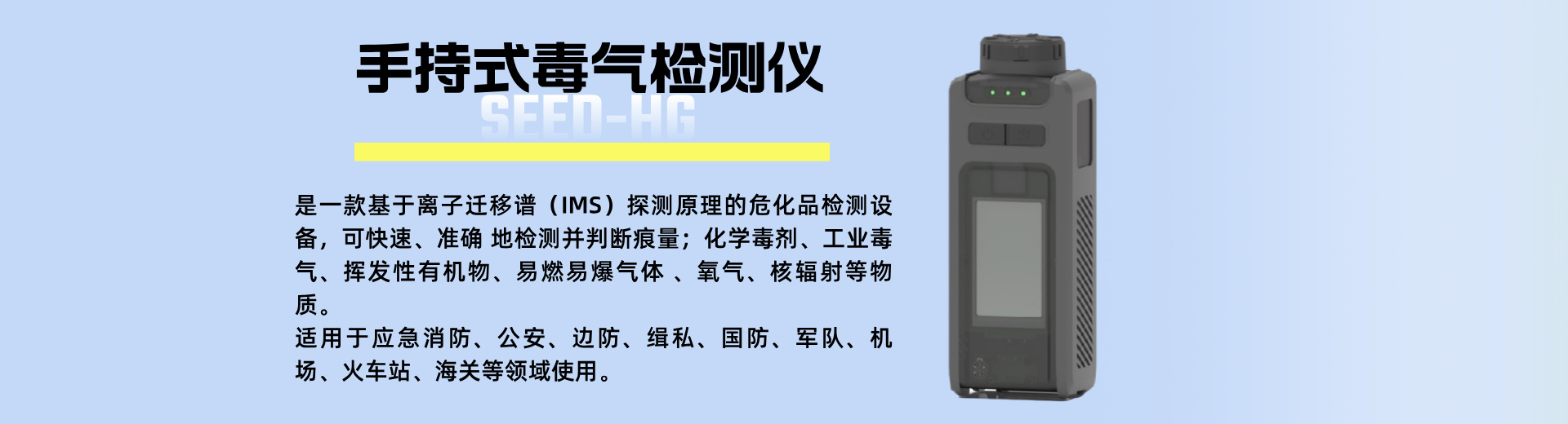 手持式毒氣檢測儀是一款基于離子遷移譜(IMS)探測原理的?;窓z測設備,可快速、···...
